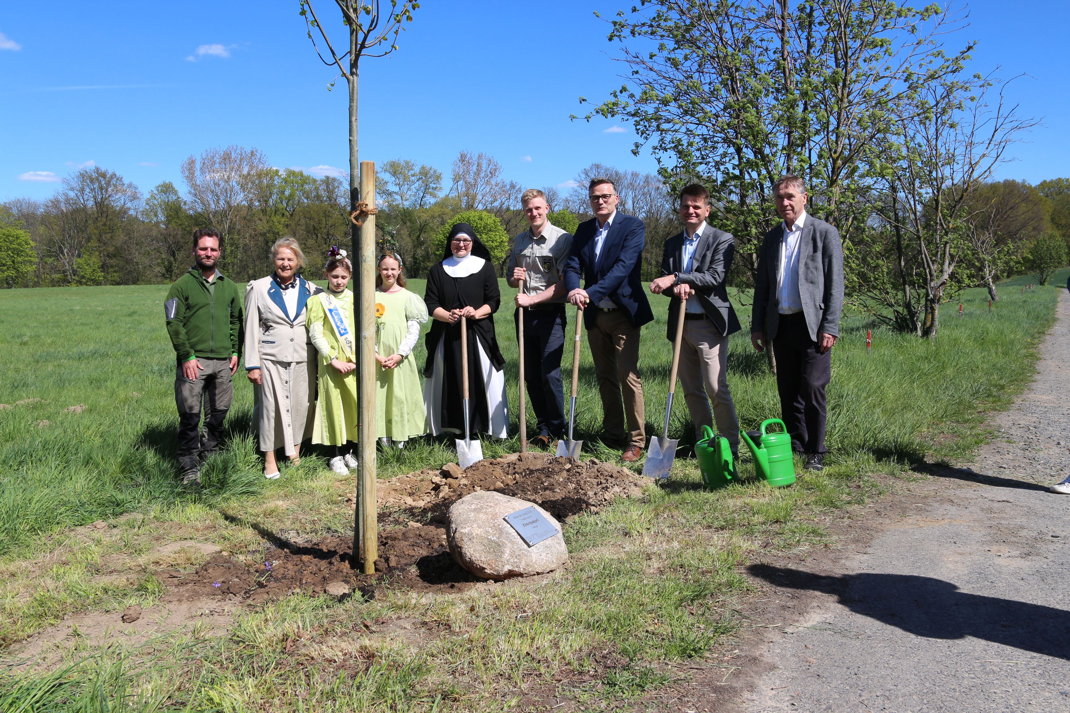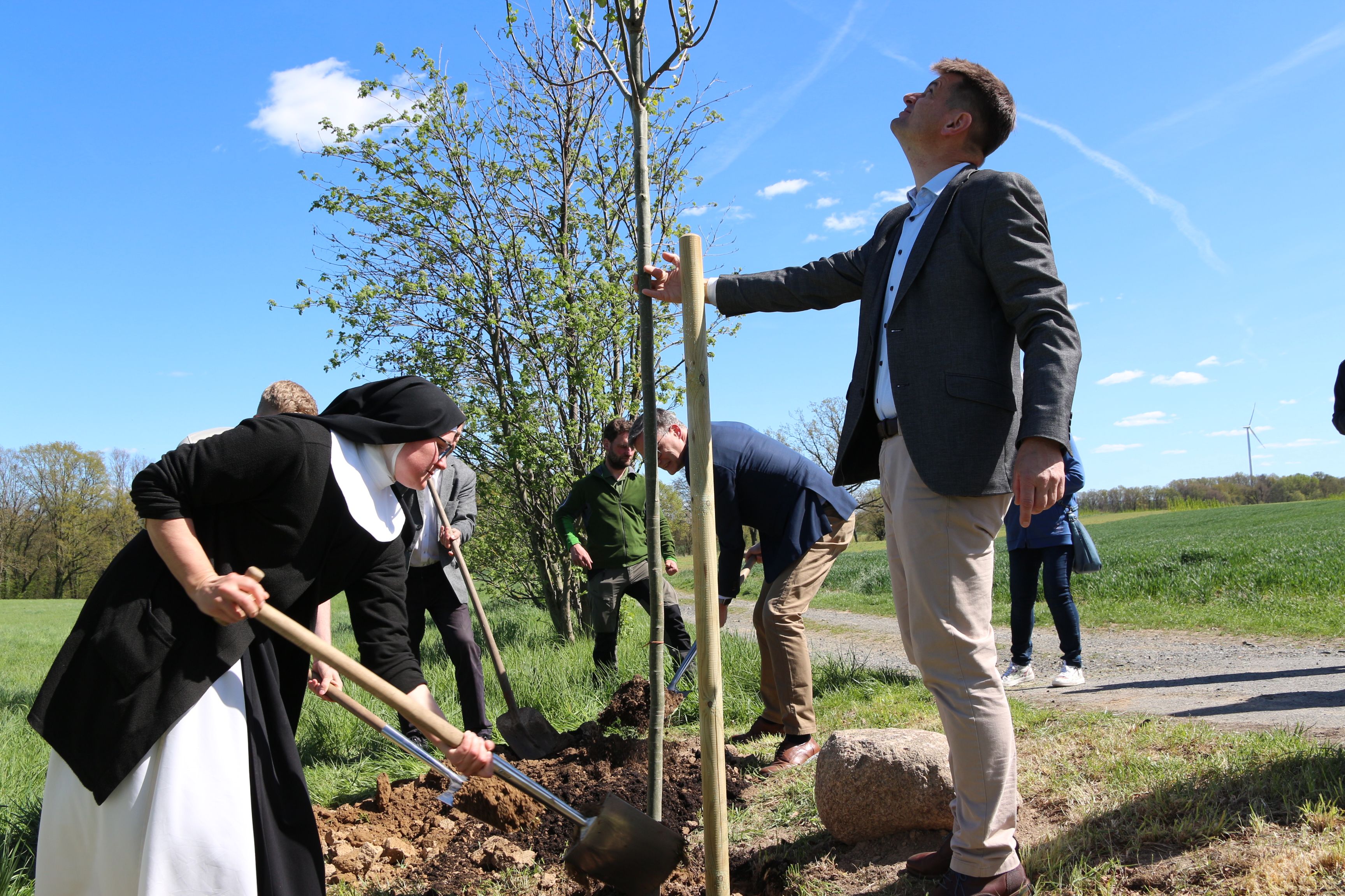 Ein besonderer Höhepunkt war erneut die traditionelle Pflanzung des „Baumes des Jahres“. Für das Jahr 2026 fiel die Wahl auf die Zitterpappel (Populus tremula). Gepflanzt wurde sie von der Cellerarin des Klosters, Schwester Thaddäa Selnack, gemeinsam mit Heinz Bernd Bettig, Präsident des Sächsischen Landesamtes für Umwelt, Landwirtschaft und Geologie. Ergänzend dazu stellte Jonathan Eggert, Referent im Bereich Privat- und Körperschaftswald des Staatsbetriebs Sachsenforst, die Besonderheiten und ökologische Bedeutung dieser Baumart anschaulich vor.