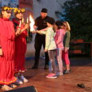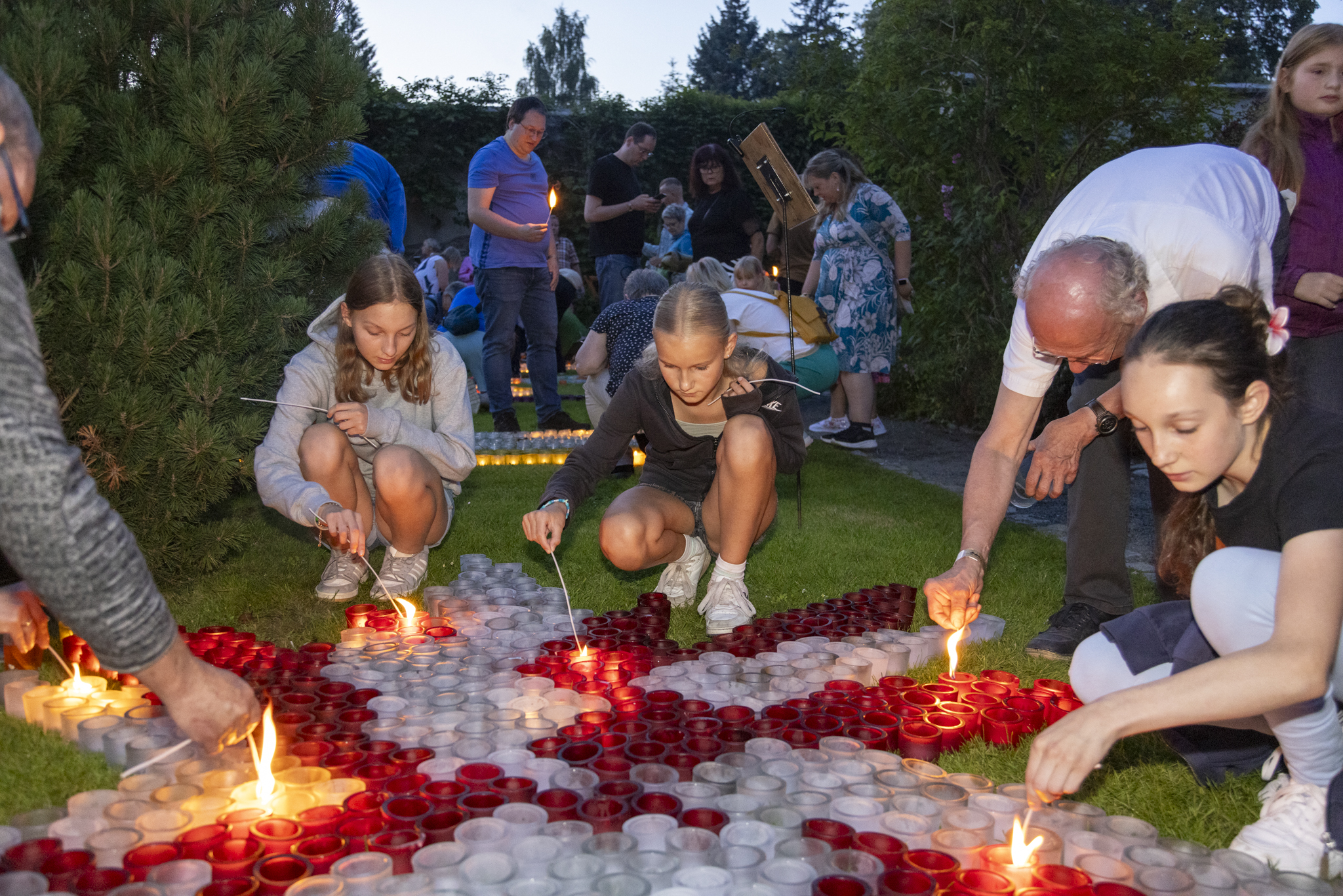 Mit Einbruch der Dämmerung wurde es magisch: Nach den stimmungsvollen Klängen von Felix Räuber zündeten alle gemeinsam die Kerzen an – und der Garten begann zu leuchten. In diesem Jahr formten die über zehntausend Kerzen insgesamt 17 kunstvolle Bilder – darunter ein Herrnhuter Stern (100 Jahre Patentanmeldung!), das Logo der Kulturhauptstadt Europas 2025 – Chemnitz – und sogar der blaue Elefant aus der „Sendung mit der Maus“, der in diesem Jahr seinen 50. Geburtstag feiert. Auch der gute sorbische Zauberer Krabat war mit dabei: Der Schriftsteller und Maler Martin Nowak-Neumann/Měrćin Nowak-Njechorński, der 1954 die Krabat-Sage neu erzählte und illustrierte, wäre am 3. Juni 2025 125 Jahre alt geworden. Das große Finale lieferte die spektakuläre Licht- und Feuershow von Ravenchild-fire, die der stimmungsvollen Kulisse das i-Tüpfelchen aufsetzte.