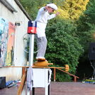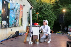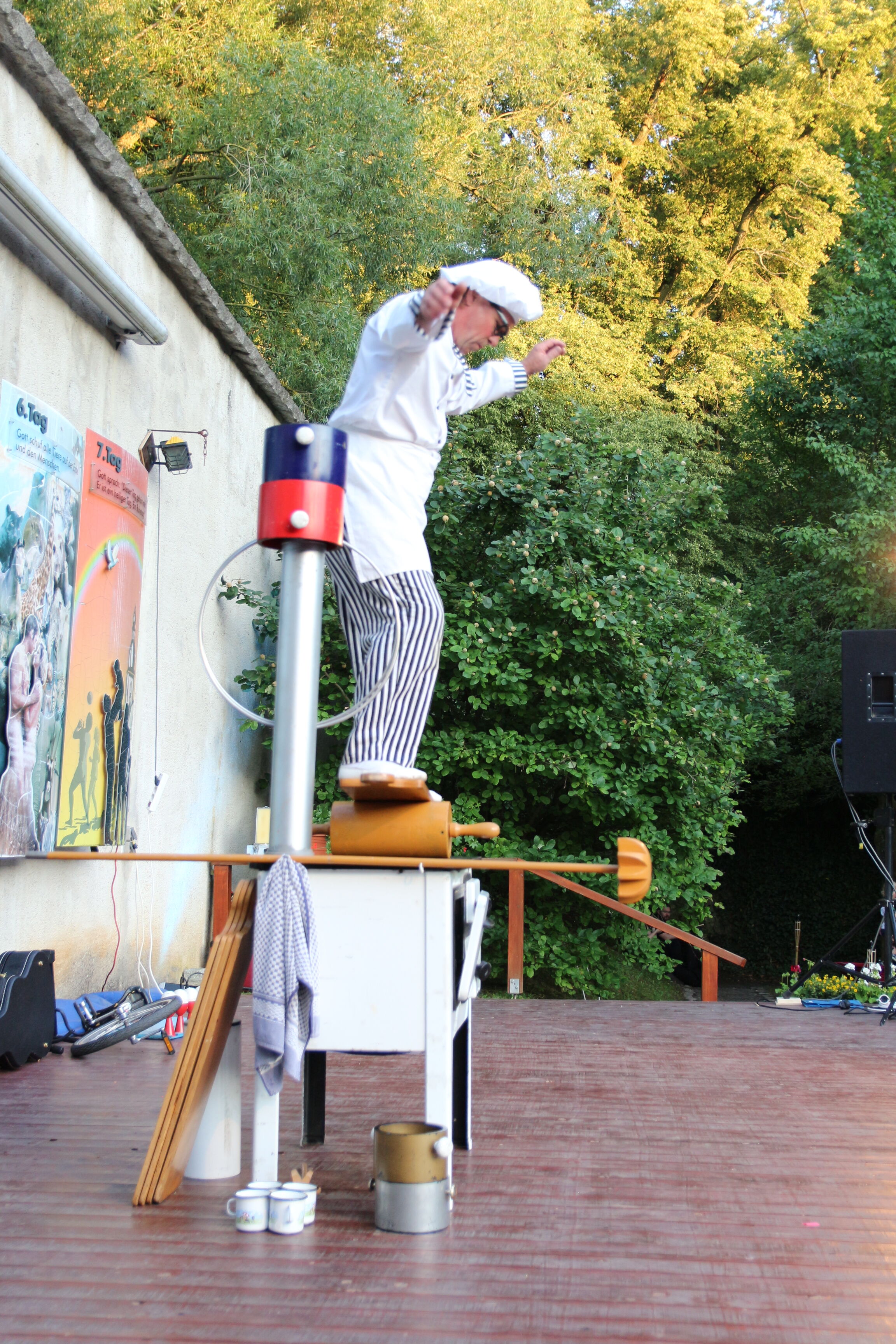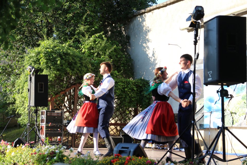 Schon ab 18 Uhr strömten die Gäste bei bestem Sommerwetter in den Garten und wurden mit einem abwechslungsreichen Programm empfangen. Den schwungvollen Auftakt machten die jungen Tänzerinnen und Tänzer der sorbischen Tanzgruppe aus Schmerlitz. Danach gab es ein musikalisches Highlight: Felix Räuber präsentierte einen Mix aus bekannten Songs, wie seinen Erfolgshit „Allein, allein“, sowie Liedern aus seinem neuem Konzertprogramm „Wie klingt Heimat – wie klingt der Osten“ – zum Zuhören, Dahinträumen und Mitsingen. Wer gerne lacht, kam beim skurrilen Mix aus Artistik und Comedy des „verrückten Kochs“ Tasso Witopil voll auf seine Kosten.